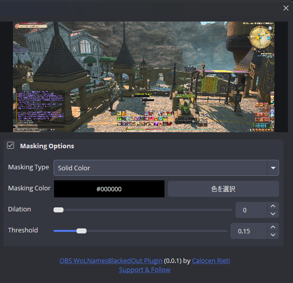 OBSでキャプチャしているFFXIV(Final Fantasy XIV)の画面からユーザー名を黒塗りするOBSプラグインです。