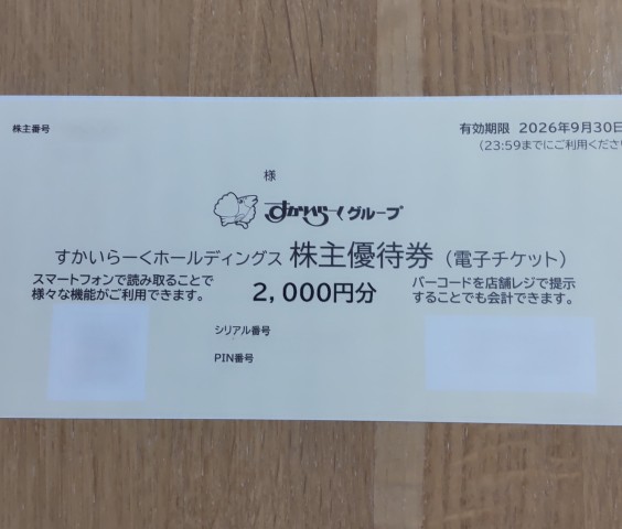すかいらーくは、グループのガストなどで使えるギフト券です。